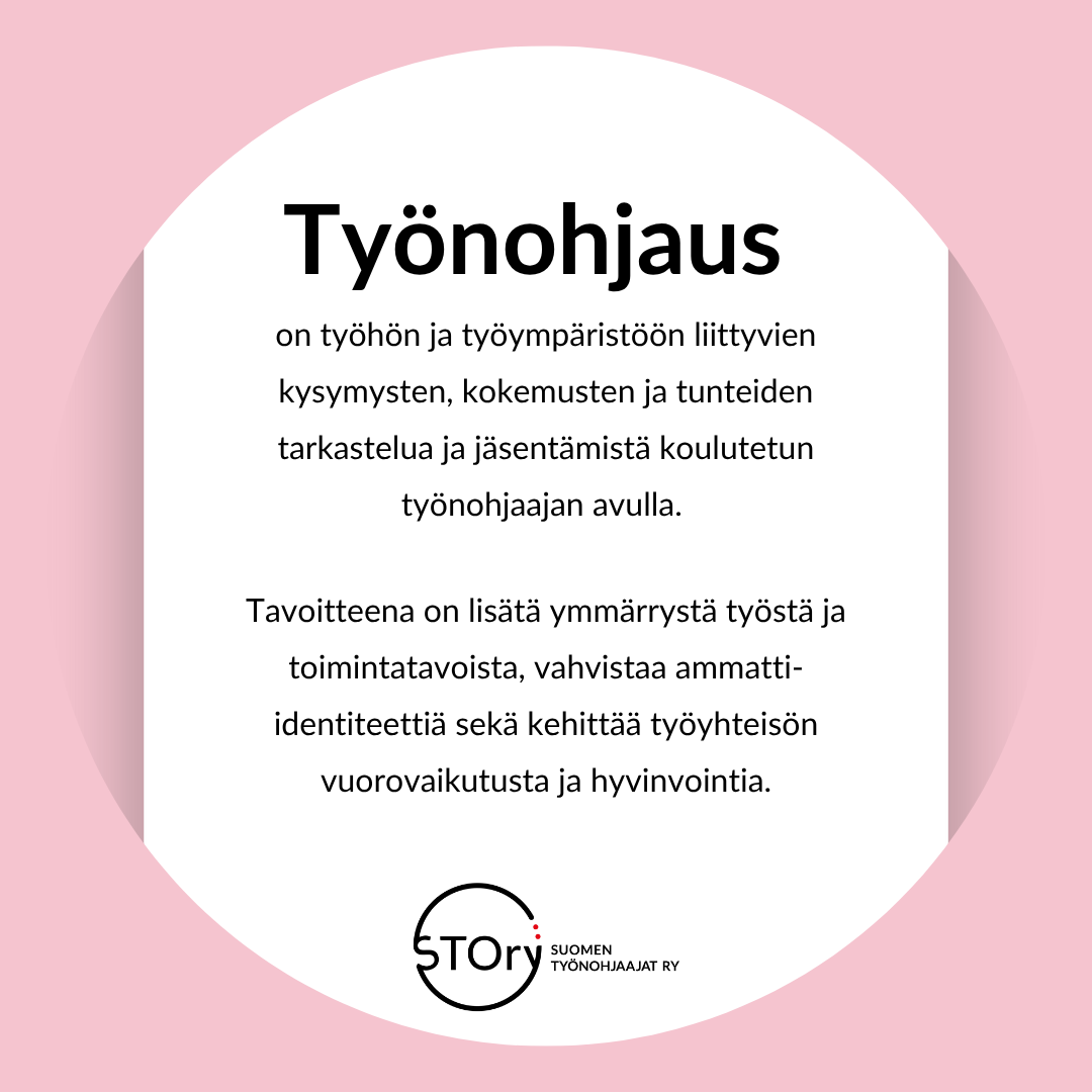 Olen tehnyt työnohjausta vuodesta 2018 alkaen. Palveluihini kuuluvat ryhmä-, työyhteisö-, yksilö- ja johdon työnohjaus. Ohjaustilanteissa luon luottamuksellisen ja lämminhenkisen ympäristön, jossa vaikeidenkin asioiden käsittely tuntuu luontevalta. Vahvan akuuttihoitotyön kokemuksen ansiosta olen tottunut äkillisesti muuttuviin tilanteisiin ja siksi pystyn nopeasti reagoimaan ihmisten yksilöllisiin tarpeisiin. Käytän ratkaisukeskeistä viitekehystä hyödykseni työnohjauksessani. Tämä tarkoittaa, että pyrin ohjauksissani kiinnittämään enemmän huomiota eri ratkaisumalleihin kuin ongelman syntyperän pohtimiseen, mikä taas luo työnohjauksiini toivekkuutta ja korostaa ihmisten omaa toimijuutta.
